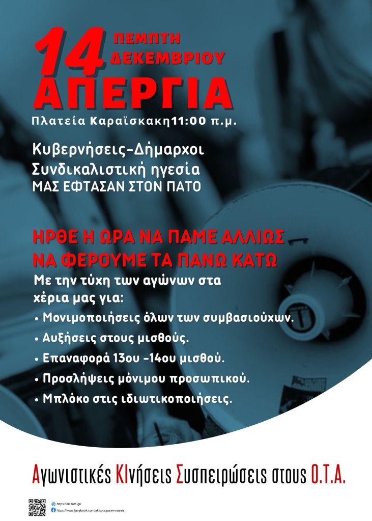 Συνέχεια ανάγνωσης «Ανακοίνωση για την ΑΠΕΡΓΙΑ στις 14-12-2023»