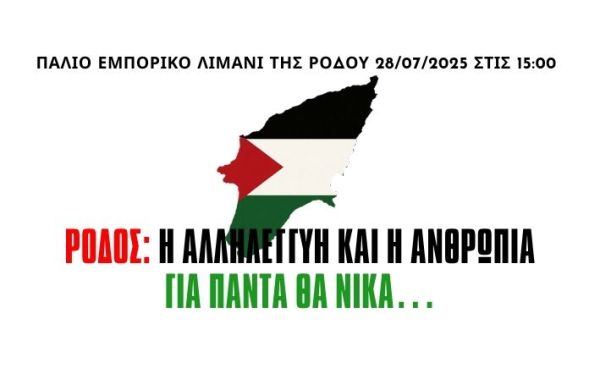 Καταγγέλλουμε την έναρξη προκαταρκτικής εξέτασης και την κλήση σε απολογία που δέχθηκαν τα μέλη του Διοικητικού Συμβουλίου του Συλλόγου Υπαλλήλων Δήμου Ροδίων από τον εισαγγελέα στη Ρόδο, λόγω της συνδικαλιστικής δράσης τους και της απόφασής τους – κινητοποίησης για έμπρακτη καταδίκη της γενοκτονίας των Παλαιστινίων, του συνεχιζόμενου εγκλήματος πολέμου και του εγκλήματος κατά της ανθρωπότητας από τις κατοχικές δυνάμεις του κράτους–δολοφόνου του Ισραήλ.