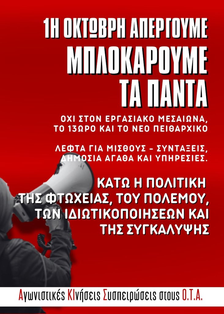 Δηλώνουμε ότι αυτός ο αγώνας δεν πετσοκόβεται σε κομμάτια, 3ωρες στάσεις εργασίας κατά τόπους όπου έχει μπλόκα όπως πρότειναν οι συστημικές δυνάμεις, ούτε υπονομεύεται με γραφειοκρατικά κομματικά απογευματινά καλέσματα. Ο αγώνας είναι ΑΠΕΡΓΙΑΚΟΣ και ως τέτοιος μας καλεί για τη συνέχισή του ως την ΝΙΚΗ!